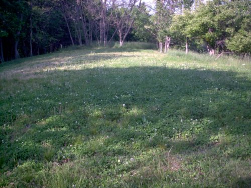 We mowed this food plot on May 13th and I doubt that we mowed much of the clover. Similar to the oldhouse plot this one is about 50 percent clover but is patchier. The cameras in this plot aren’t revealing much activity, but when I went out to place the camera on our last visit I jumped a doe out of the tall hay alongside the plot. She was just lying there in the shade. We may see more activity in this plot as summer progresses.