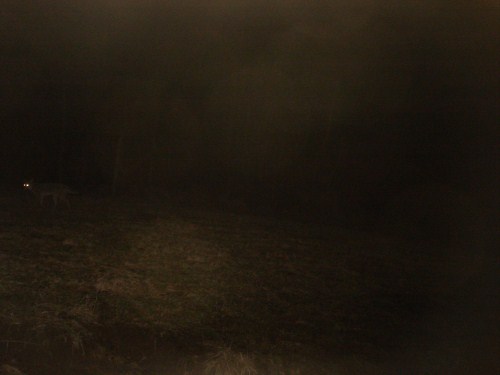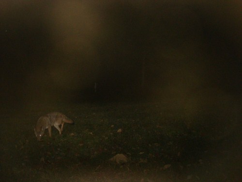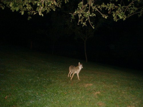 The first of this weeks coyote pictures comes from under our apple trees and the second picture is from the same place as last weeks. The date and time stamps reveal that it is likely the same coyote. We learned a few years ago that coyotes like apples.