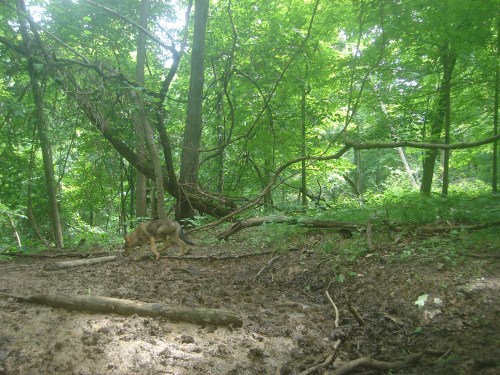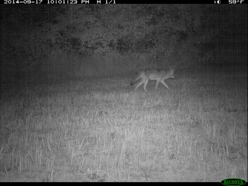 We got five coyote pictures in this set. It looked like the same coyote kept moving back and forth in front of the camera over about a 20 minute time frame. This was the best of the five pictures.