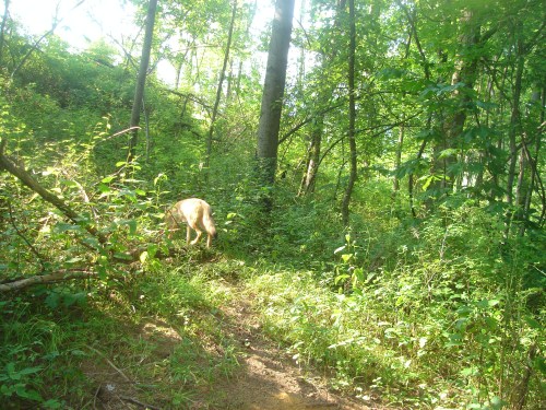This week we got two coyote pictures. One picture of one walking away from one of our mineral lick locations and another walking through a hayfield food plot.