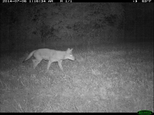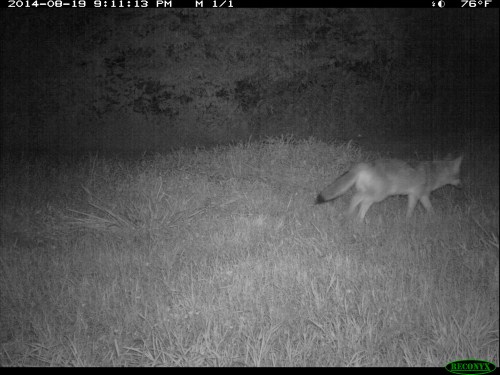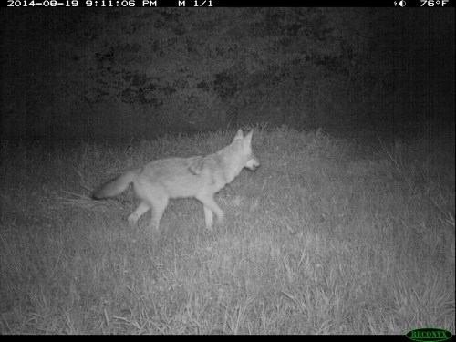 Welcome to our 2014 coyote pictures page. Last year we got five coyote pictures, which isn't a lot since it's not uncommon to hear them. I guess it's easier to hear them than to see them.