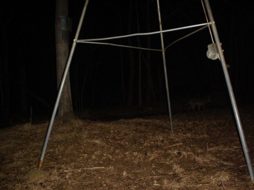 Two coyote pictures this week. A picture of a coyote visiting an attractant we had out for the deer. We'll have to remember this. The second one was caught in a food plot we often catch them walking through.