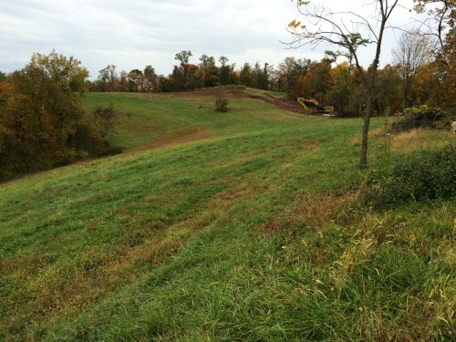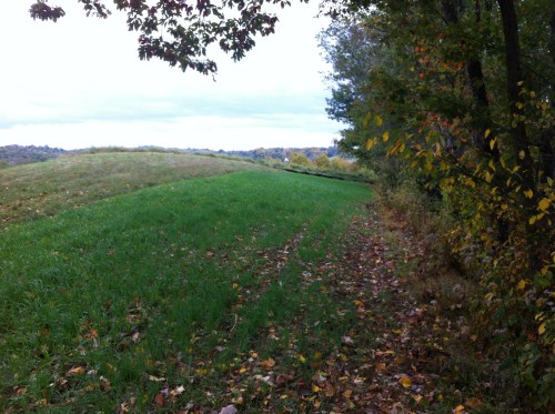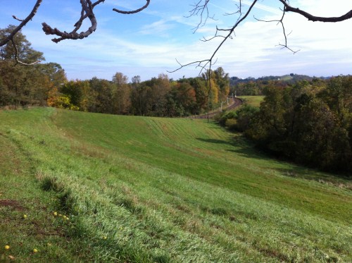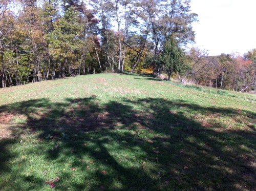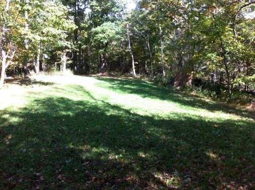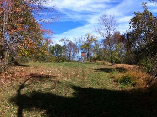 Middle Clearing Plot In the spring of 2013 we planted Monster Mix in this plot and on March 7th of this year we overseeded with Durana and limed the plot. Then on April 18th we added 100 lb 10-20-20 fertilizer. This plot has been a strong plot of clover all spring and summer and still has a lot of clover this late into the fall. The sunshine makes it difficult to see how nice this plot is, but you can see that it is nice and green. This will be a nice plot again next year.
