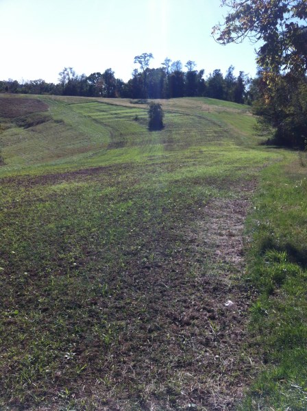 Front Field East Plot This plot was planted three years ago with no lime or fertilizer and minimal preparation so it's been a sub-par food plot. It's pretty much just been another area that we mowed. Once we till and plant the areas that were in fall annuals this plot is next on the list and will get something for the summer. At least it will be another area I get to use the tiller on! I'll have to get an approximate area on this plot. It may be close to an acre, or close enough we can call it an acre.