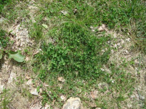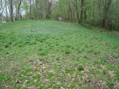 This plot doesn't look great, but there is a combination of grass and clover. Hopefully we can kill the grass and the clover will thrive.