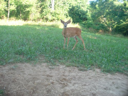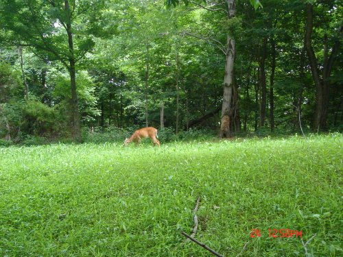 The cornpatch food plot is doing well even though I've done little to help it out this year. I'd say that it is at least 50 percent clover and we regularly get pictures of deer eating here.