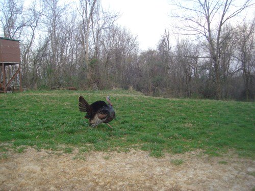 We get thousands of pictures each month with our digital trail cameras but we narrow down each set of pictures to our favorite six or seven and these are usually buck pictures. As you can imagine there are always several more that are very good but don't make the cut. Below is one of our favorite pictures from April. We are a deer hunting website but turkey hunters still like to see gobbler pictures so here you go. A gobbler waltzing through one of our food plots. You can take a look at our favorite deer pictures from April 29 here.
