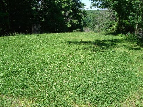 Throughout the entire hayfield plot there will be a lot of clover for deer to eat this summer.