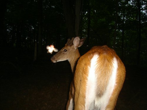 We get thousands of pictures each month with our digital trail cameras but we narrow down each set of pictures to our favorite six or seven and these are usually buck pictures. As you can imagine there are always several more that are very good but don't make the cut. Below is one of our favorite pictures from March. This one looks like a red eyed fly. What do you think? You can take a look at our favorite deer pictures from April 27th here.
