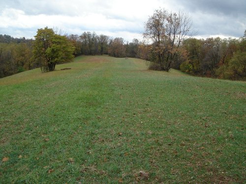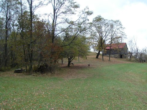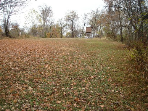 The cornpatch plot is in the back of the picture and is the brown area. You can see deer eating under and apple tree in a corner of the plot.