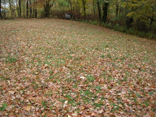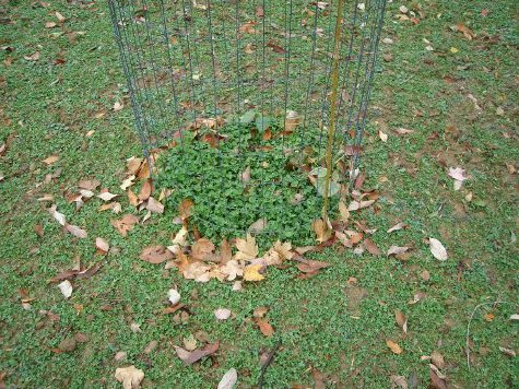 This plot is covered with leaves, but there is some green in there if you look hard.