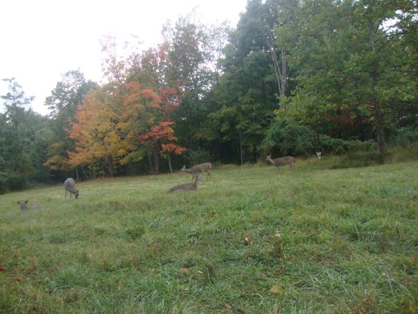 Our New Nutritional Plan Last deer season we decided to modify our nutritional plan for our deer. In the past we ran corn feeders year round, gave them sweet feed on occasion around deer season and had our food plots. This year we let the corn feeders run out after deer season and just started them up at the end of August. The deer love the corn, it provides some energy and a little protein and it let's them know we still like them. Let's be honest, it keeps them around. We are giving them 12% sweet feed as long as they will eat it. There is a period in the warm months between spring green up and late summer when the deer pay little attention to it so we don't bother putting it out for only the raccoons. This provides higher protein content than corn and poor browse and some vitamin and mineral support as well. It's not as high in protein as manufactured deer feed, but gosh that stuff it expensive. We also from time to time add high protein attractants to the feed. We are either upping the protein value or just fooling ourselves. We picked up a lot of the attractants after season when it was on sale. The deer seem to like it just as much as when it was full price. The main leg of our efforts are the food plots. These provide excellent protein values and are available in all but the coldest of months. We also have some steeper areas of our fields that we try to mow at least once a year. Sightings show us that the deer like these areas as well. We know that it will take three or four years to see what impact if any on antler size this may have. Right now all of our deer look real healthy and they seemed to look good through last winter. Hopefully this is a good sign.