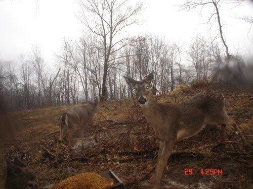 Since we saw signs of a green up, we didn't put out any protein feed so we're monitoring all of our mineral licks this week. I'm not sure if they'll start using them heavily yet, but we'll find out. We also still have cameras at our feeders and I put one in the hayfield to see what comes by.