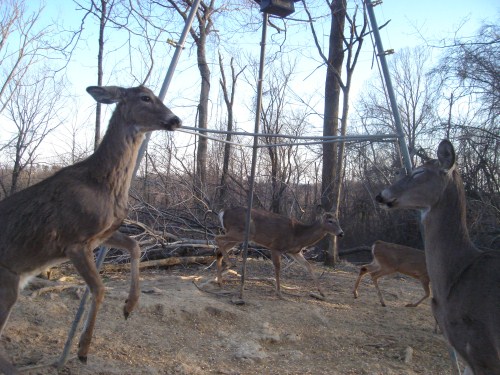 Finally a week without snow. It looks like spring may arrive after all. Once again this week the bucks antlers look like they are about to pop.