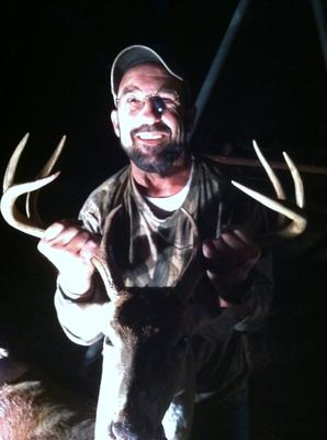 Nice photo, but the background should have been lit more, to show what kind of deer he is.