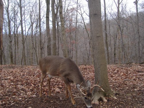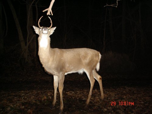 January 6th Deer PicturesWelcome to our first set of deer pictures in 2008. I was a little surprised that we didn't find more pictures of bucks who had shed their antlers. The spike who had lost one side in the last set of pictures was still holding his lone spike this week as well. We didn't get any pictures of the six point buck that we had been seeing the past few months. I suppose it is possible that he may have shed his antlers and we didn't notice it in the pictures. He may also not have showed up around the other bucks if he is now without his headgear. They are good at keeping us guessing. It looked like most of the other regulars showed up this week but we didn't get any pictures of the big buck that showed up last week. It looks like he was just a one night visitor. We still captured close to 50 pictures at the scrape, but I've decided not to put a camera back at this location. Since we won't get to check our cameras as often during the winter I'm concentrating them on the feeders, mineral licks and the feed trough. Once all of the bucks drop their antlers I'm going to take down one feeder so I'll then have extra cameras to put elsewhere and when the food plots green up I'll start monitoring them again. These pictures were taken with our Camtrakker Digital Ranger, Trail Watcher 2060, EagleEye, Trail Watcher 2035 and Stealth Cam I390.