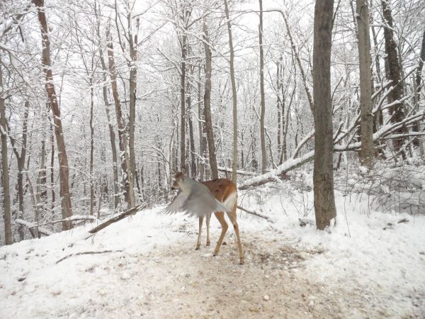 This deer was photo bombed by a bird. Every once in a while we get an interesting picture like this one.