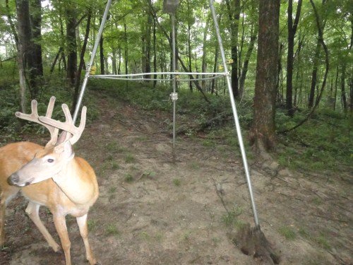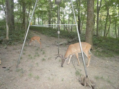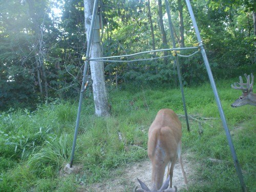 We got pictures of our bucks this week, but it was a tough camera week. We had three 9 volt batteries die on three cameras in our best locations. We also had a camera at our apple trees and we got a lot of pictures, but we had the camera a little too far away. We've made adjustments for the next week to see if we can get some good pictures and, of course, we replaced three batteries.