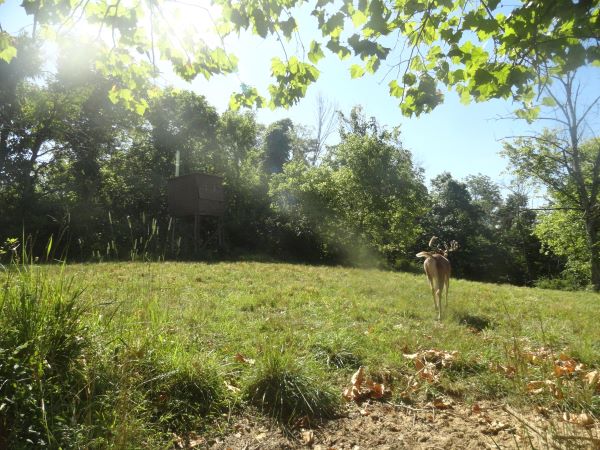 In our set of pictures from July 16th we got a nice black bear picture that we posted. The last two weeks only gave us one bear picture, but is was only his ear and top of his head so we won't bother with that one. The interesting thing is that he showed up in the evening after my son and his family brush hogged that food plot. Hmmmm