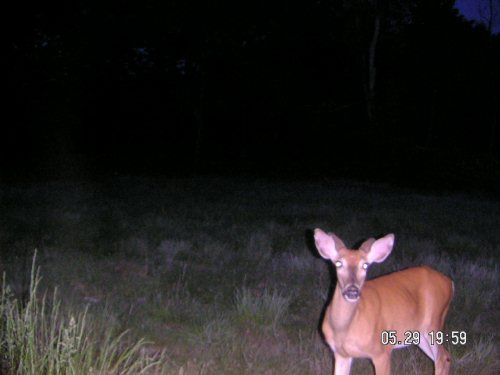 Our game cameras were only out for about four days this week but we still got some good pictures in this short time. We got our first fawn pictures at two different food plots. The young fawns always look so cute, covered with all of those spots. The bucks antlers are starting to develope a little character to them. It shouldn't be long until we can start identifying them by their antler characteristics. We also got pictures of a buck in one food plot where we hadn't previously seen a buck yet this spring. These pictures were taken with our Penn's Woods Digital Scout, Moultrie GameSpy 200, Wildview Xtreme II and an EagleEye Trail Camera.