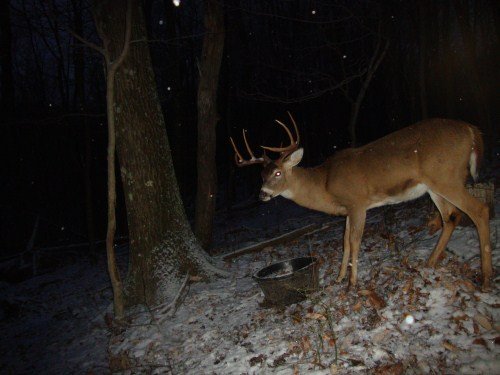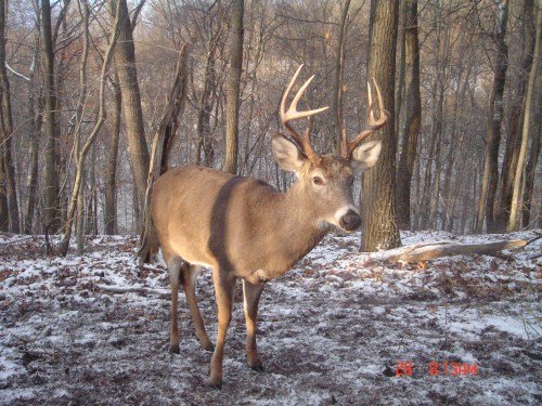 The big eight stuck around this area most of the week. Take a look at the snow on his antler.