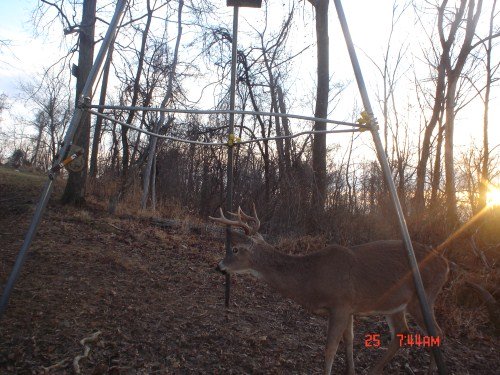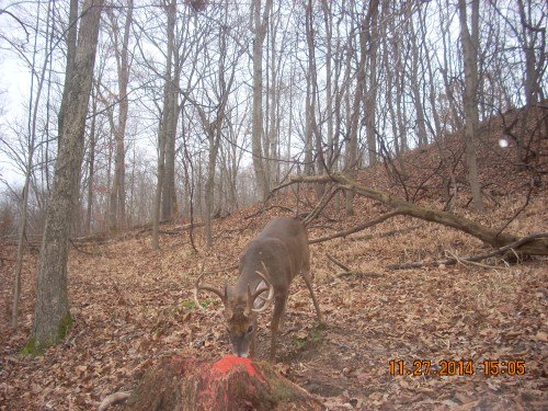 We can't figure this nine point out. This is the only spot we get his picture, which isn't far from protein feed and a corn feeder.