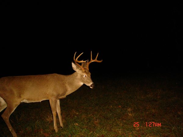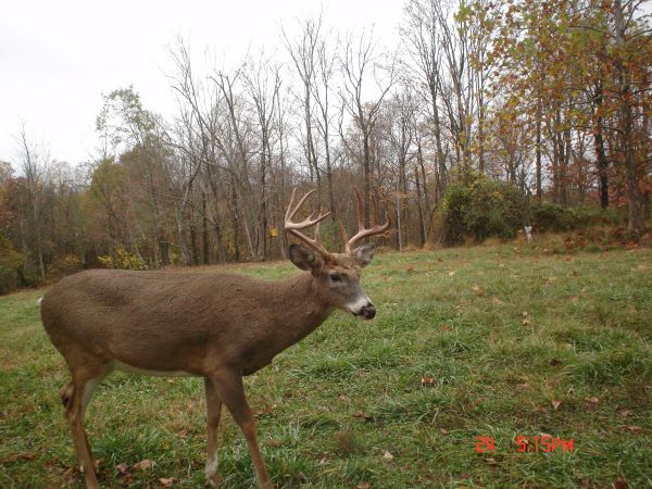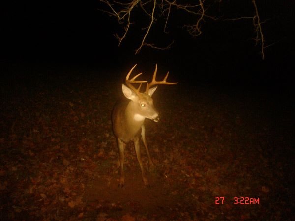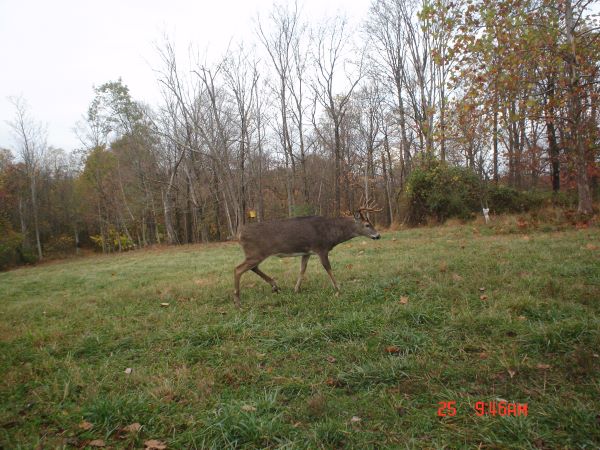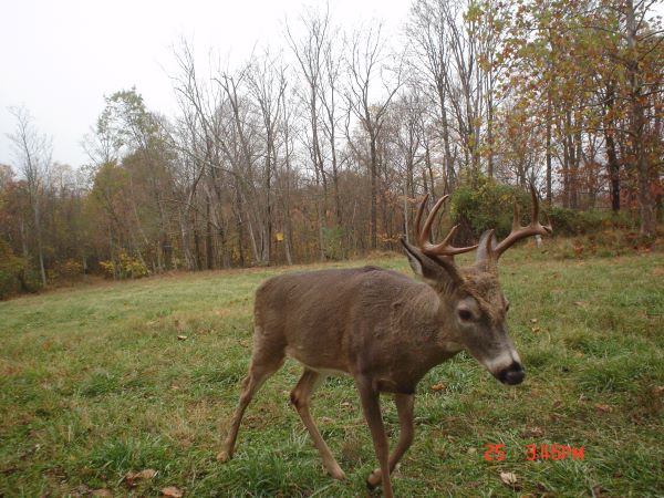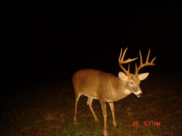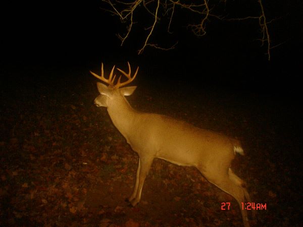 The bigger ten point. This buck has moved to a different location than we saw him last year. He has extra white on his front left leg that helps us identify him.