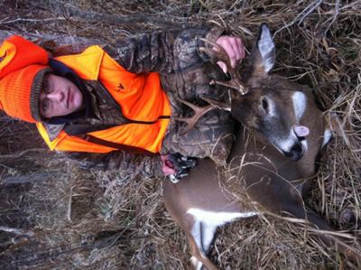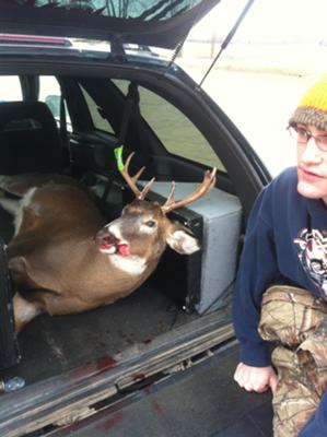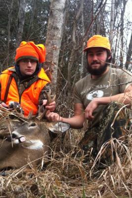 On November 18th I took my friend Heath out, he skipped school for a good all day hunt that Friday. Then at 8:45am this buck came into our shooting lane. This was his first deer ever, and a nice size one for the area. We hunted a ground blind under a cedar tree in the swamps near peach lake, In west branch, Mi.