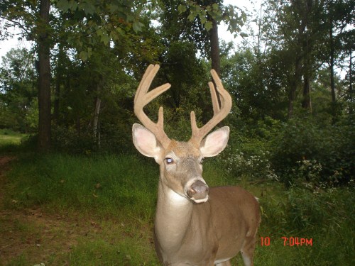 The overbite buck hadn't shed his velvet yet, one of only two bucks to still have velvet.