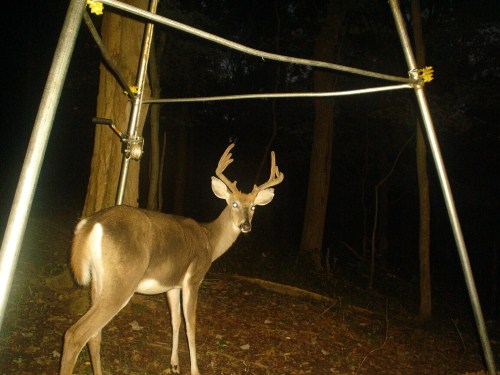 This buck is going to be a dandy next year if he survives. Trail Watcher 4220