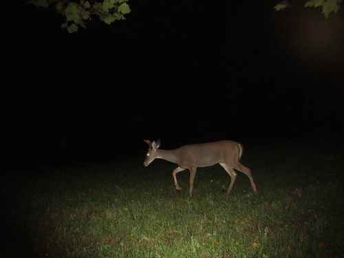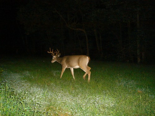 This set of pictures again shows that the bucks are starting to be less predictable. We're still getting the big eight point and the big ten point showed up again. The smaller ten point walked past our cameras once again this week, but the nine point and seven point didn't show up. We think we got a picture of what we think may be another ten point, but it was a rainy night so it's real hard to tell. We didn't see the other big eight point or the eight point with the little brow tines again this week. Hopefully they'll come back.