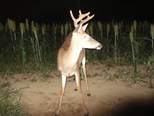 September 7th Whitetail Deer PhotosSince we had just put our cameras out on Monday and gathered them again on Friday we only had them out for four days so we didn't have quite the number of pictures that we would have for a whole week. We also didn't get any new buck pictures with our bucket feeder this week, but we think we have it in a good spot for the coming week. We also got a second buck with shed velvet. This time it's the ten point buck. We're still waiting for the rest of the bucks to shed although we did see a small buck without velvet that showed up near the house in the evening. We didn't get any pictures of a couple of bucks that we'd been seeing over the last two weeks, but we think our latest bucket feeder location may pick them back up again. These pictures were taken with our Camtrakker Digital Ranger, Cuddeback Expert and homemade WhitetailCam P41.