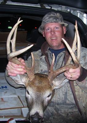 Some friends wanted another view of my buck . This is a picture my daughter took later that evening after the buck was caped out and processed . In this picture the kickers are more visible .