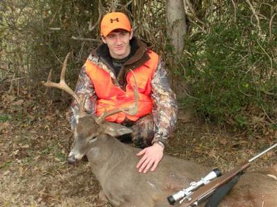 Hayden shot this wide 9 point 1-8-12 at 8:40 am on the last day of the late juvenile season while hunting with his Dad in Carroll Co., TN. He had just passed on a small doe that came into the draw. He was glad he passed when this buck came along 2 minutes later. The buck was making every turn along the trail the doe had just made. When the buck hit the last opening the doe had been in before it disappeared, Hayden took the shot. The big 9 whirled around going back the way he came. As the buck made its way up the the other side of the draw it started to stumble and went down. What a relief! What a year! Hayden had hunted hard all year. He not only hunted hard during rifle season, he bow hunted and muzzloaded during October and November. This was the first and last 2 deer Hayden had saw all year, while in stand. Just wasn't his year until the very last day.